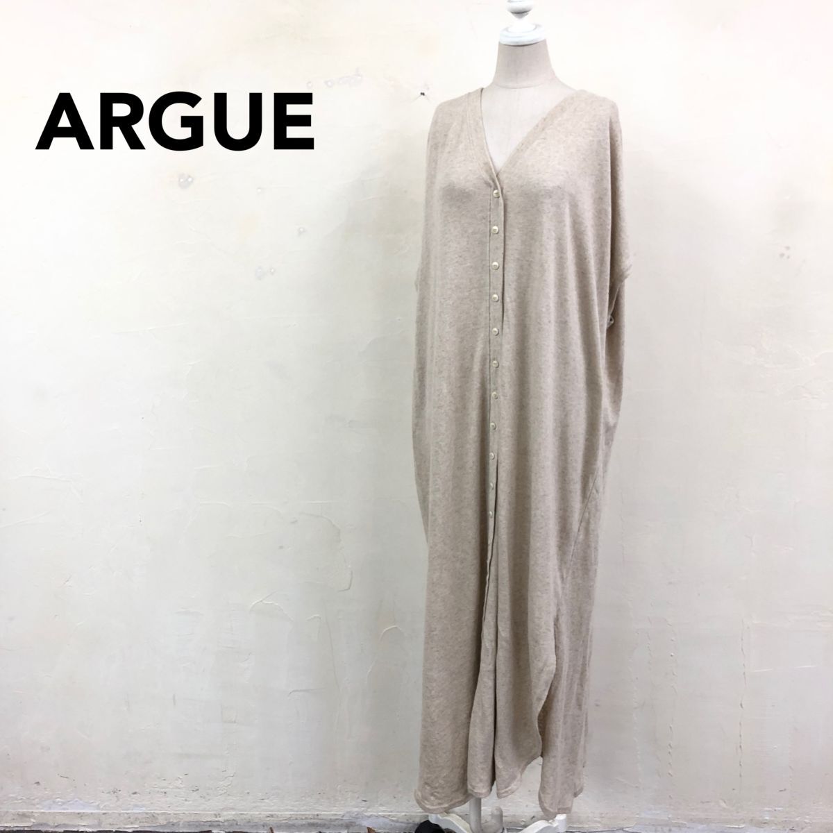 - 2K2469-O◆ARGUE アーギュー ロングカーディガン ノースリーブ ボタン 無地◆sizeF ベージュ 麻 コットン