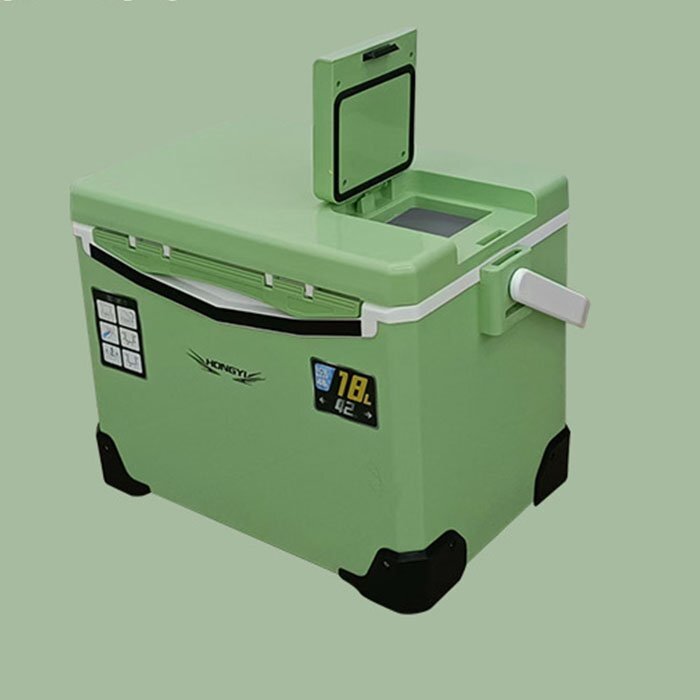 - 釣り用 クーラーボックス 小型18L ふた両開き 座れる頑丈ボディ 防水 保温保冷 ハンドル/肩ベルト付き 保冷力24-48h (グリーン・窓付き)