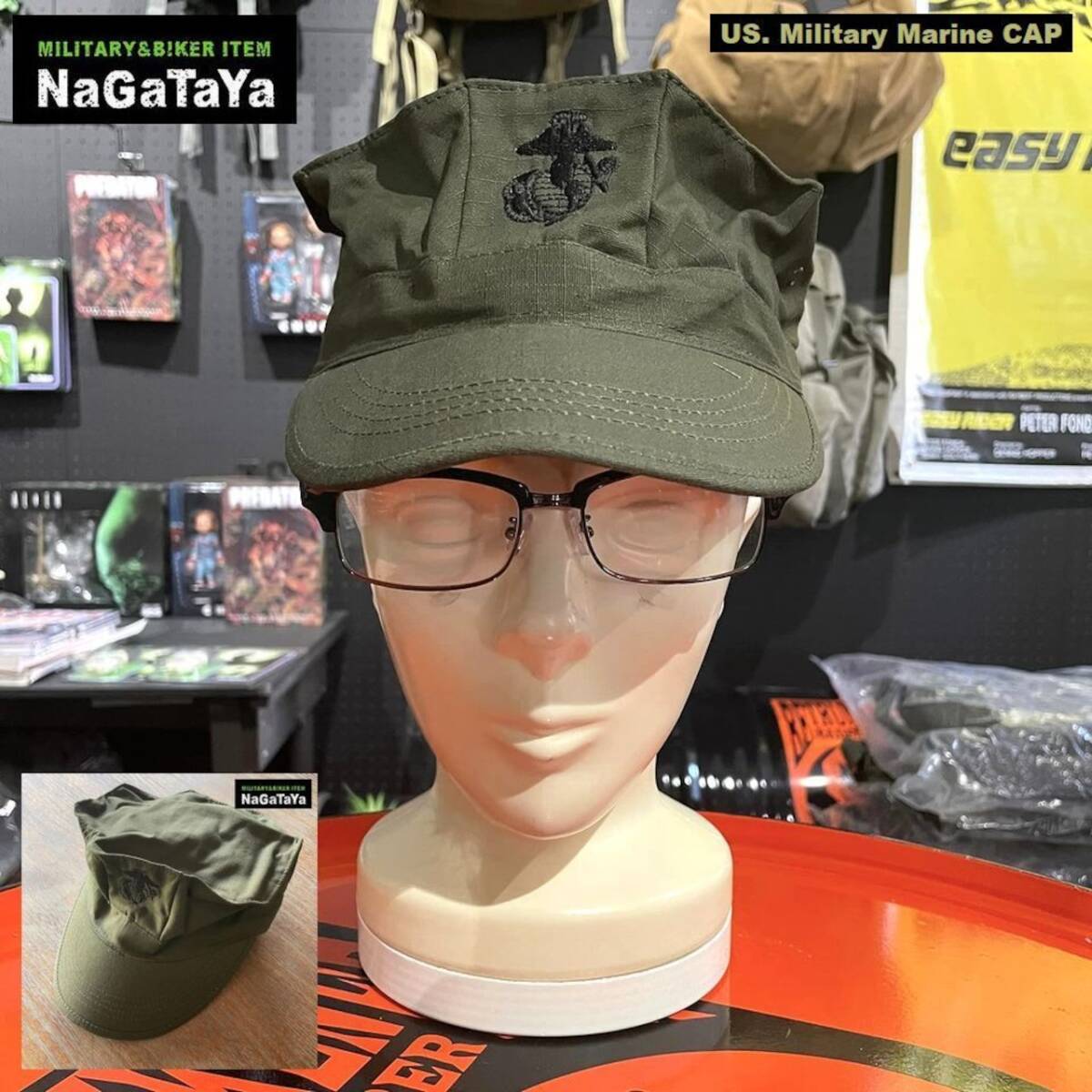 - アメリカ海兵隊 US.マリーンキャップ マリーン刺繍タイプ オリーブドラブ Lサイズ 約58cm USA 帽子 軍用CAP 野戦 兵士
