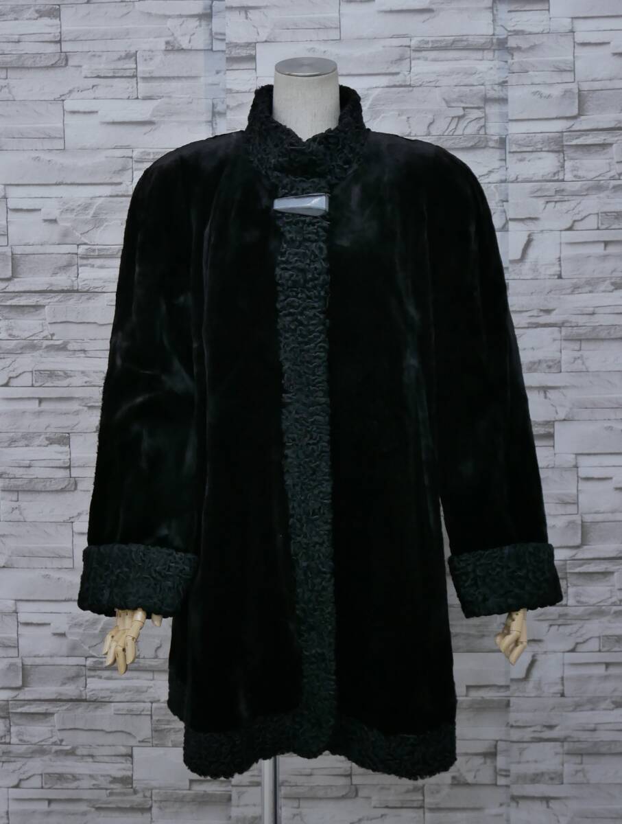 > ☆シェアードミンク☆セミロングコート☆着丈84cm☆TUNDRA FURS☆ラムトリミング☆襟元バックル☆裾ラウンド☆レアデザイン☆