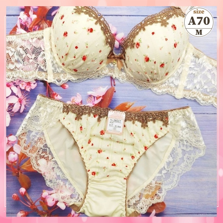 > Za7022◆新品 ブラショーツセット【A70/M】下着 ランジェリー 脇高 美谷間 リトルローズ クリーム