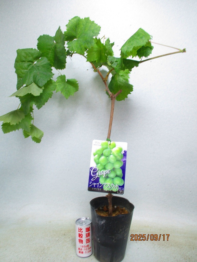 > [野風苗木流通]ブドウの苗木 シャインマスカット(91367黒ポット)全高:72㎝※同梱包は「まとめて取引」手続厳守※120サイズ*送料明記