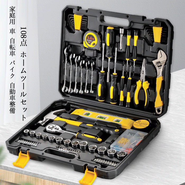 > 作業工具セッ 108点 ホームツールセット 工具セット 家庭用 車 自転車 バイク 自動車整備 工具箱セット 家庭修理 便利な収納ケース付き