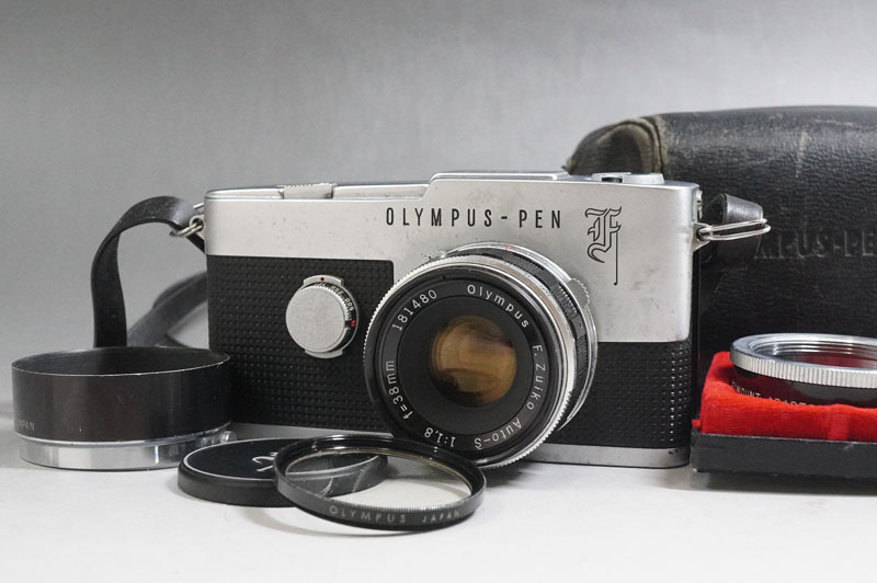 > 1円~【J43】OLYMPUS/オリンパス PEN-F 花文字 /F.Zuiko Auto-S 1:1.8 f=38mm マウントアダプター MOUNT ADAPTOR P・説明書付