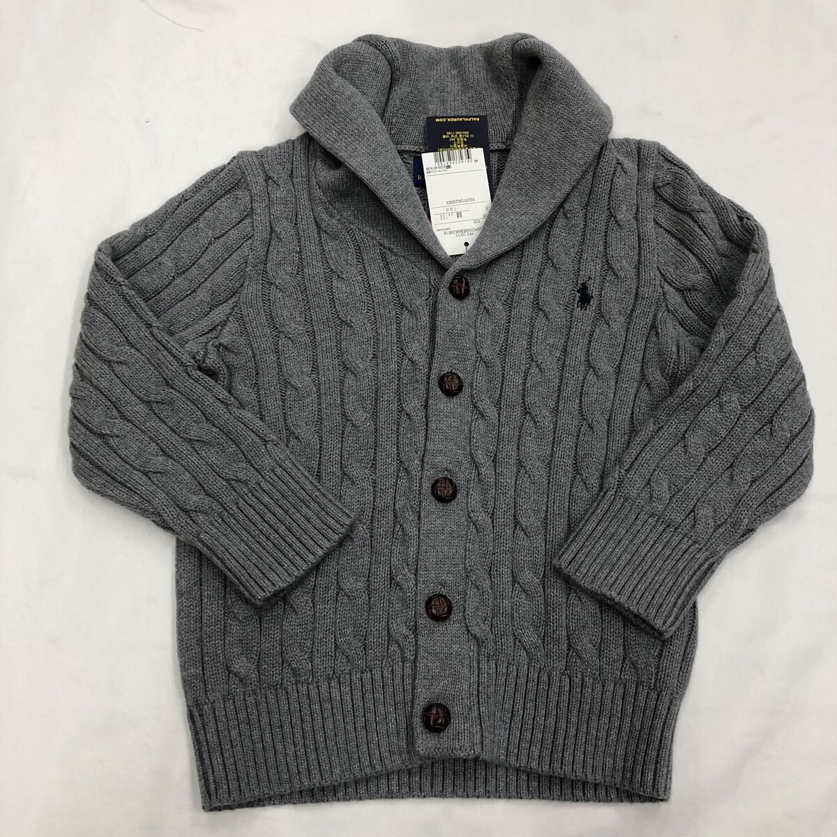 > POLO RALPHLAUREN ポロラルフローレン ジュニア用 カーディガン ニットカーディガン グレー タグ付 100サイズ 胸ロゴ