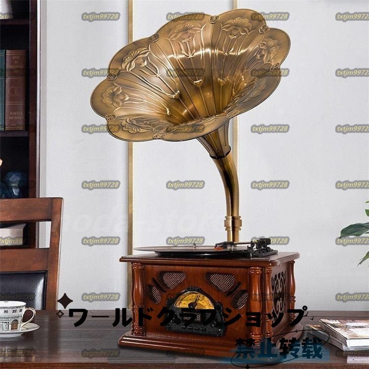 - 貴族の高級品 木製 家具 音響 インテリア コレクション 蓄音機 SP盤 33、45、78回転対応 レコード/針付き レコードプレーヤー