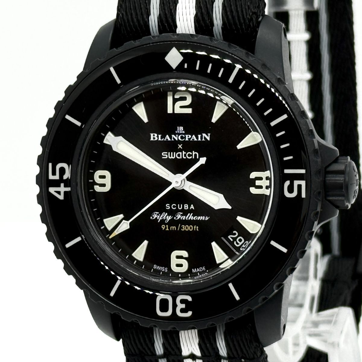 > M7828 Swatch スウォッチ アトランティックオーシャン SO35B400 CE CE×ナイロン AT 稼働品 黒文字盤 メンズ 腕時計 箱・ギャラ付き
