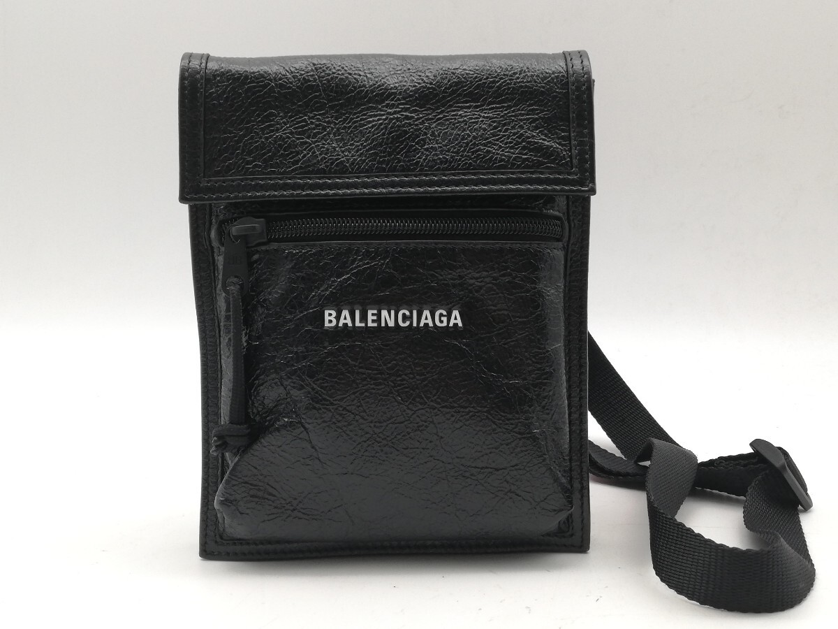 - 美品 BALENCIAGA エクスプローラー ショルダーバッグ ブラック レザー 655982 バレンシアガ バッグ 黒