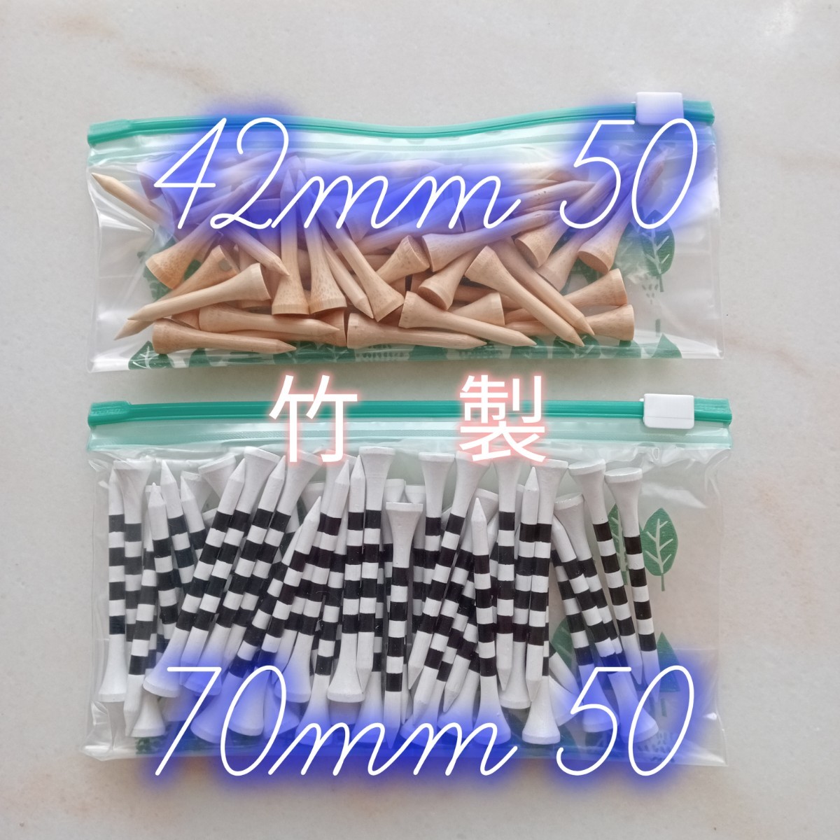 - ゴルフティー 42mmショート50本、70mmロング白50本 竹製 バンブーティー ウッドティー 新品未使用 ゴルフ用品 golf Tee お徳