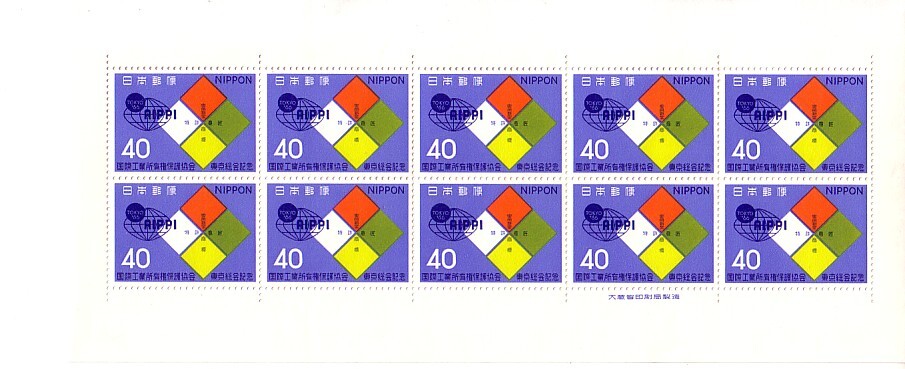 - 「国際工業所有権保護協会東京総会記念」の記念切手です