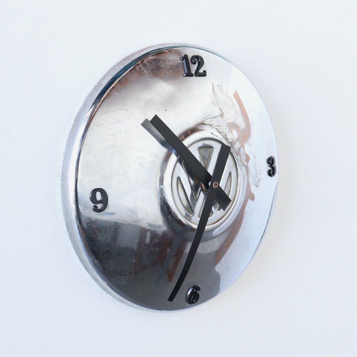 - フォルクスワーゲン ヴィンテージ ホイールキャップ リメイク時計 /VW アメリカ 壁掛け ガレージ ウォールクロック #605-7.5-193-518