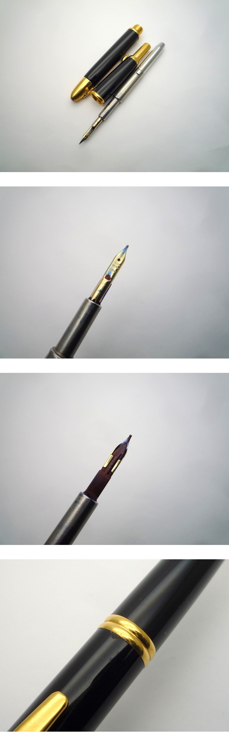 > 万年筆 PILOT パイロット キャップレス ブラックxゴールド ペン先 18K 750 M刻印 ノック式 筆記用具 文房具 1円~ TM0134