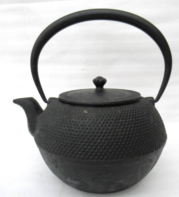 - 袖 盛栄堂 及源鋳造製 鉄瓶 あられ 霰 茶道具 南部鉄器 やかん 重量約1.74kg HMB