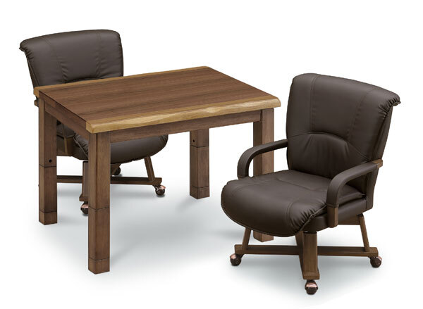 - ハイタイプ高脚/ダイニングコタツ こたつ90×75センチ幅(長方形)+肘付キャスター付き椅子2脚の3点セット ダークブラウン色