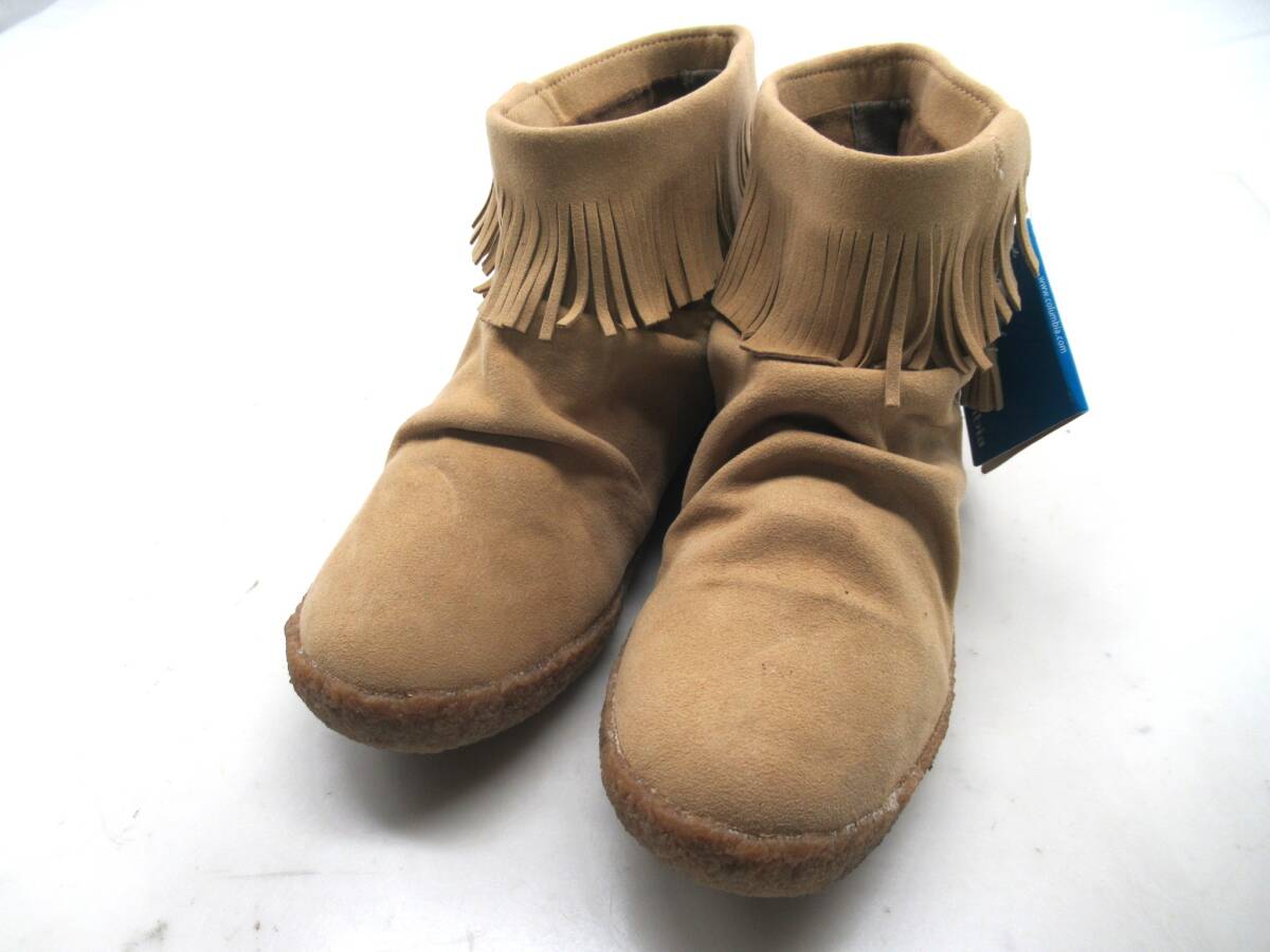 > 【送900円】1323 タグ付き Columbia コロンビア フリンジショートブーツ ミネトンカ スエード ベージュ ユニセックス 25.0