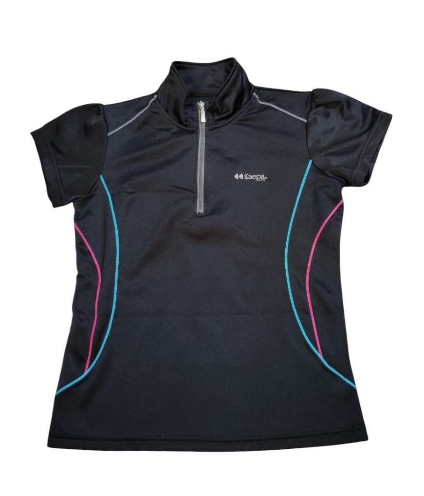 > (sp59)ケイパ Kaepa U.S.A 半袖 スポーツウェア ハーフジップ ブラック サイズM レディース マラソン トレーニング ジム
