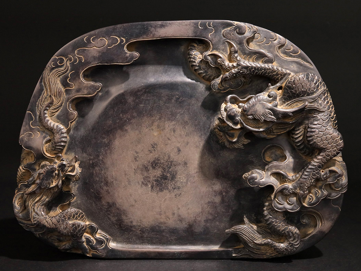 - ◆御泓軒◆『清時代 史致光銘 端石彫 蒼龍教子紋硯 端渓硯』極細工・古賞物・中国古玩・中国古美術