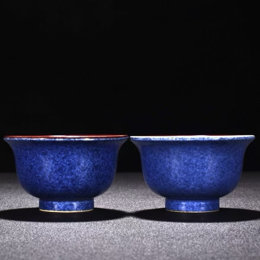 - 明時代 磁器 秘蔵 宣徳年製 散布藍内赤釉圧手杯・盃・茶碗 古陶磁器 陶芸 唐物 古賞物 時代物 骨董品 古置物 中国磁器 古美味 中国古玩923