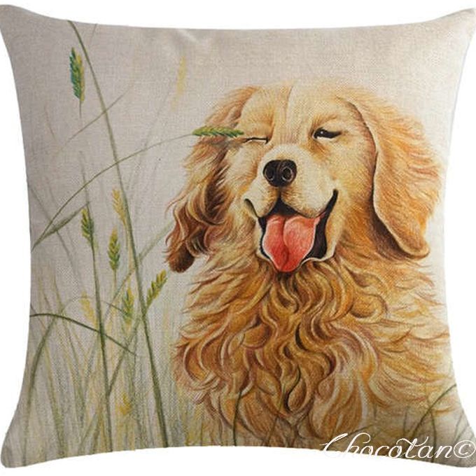- 【送料無料】ゴールデンレトリバー U イラスト クッションカバー【新品】