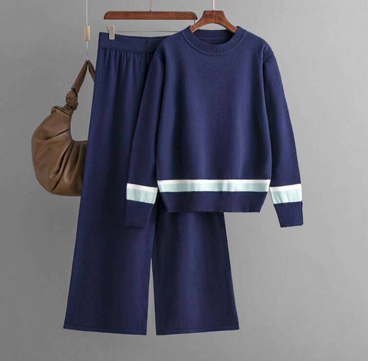 - 346 パンツスーツladiesレディース ◇ ニット素材 上質 ◇ 厚手 秋冬 濃紺