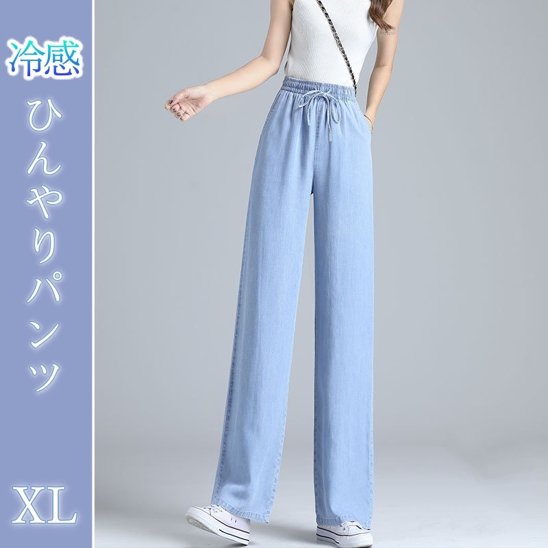 - 送料無料★即納 新品 ひんやり パンツ 冷感 デニムパンツ ストレートパンツ 脚長パンツ★XL/ライトブルー