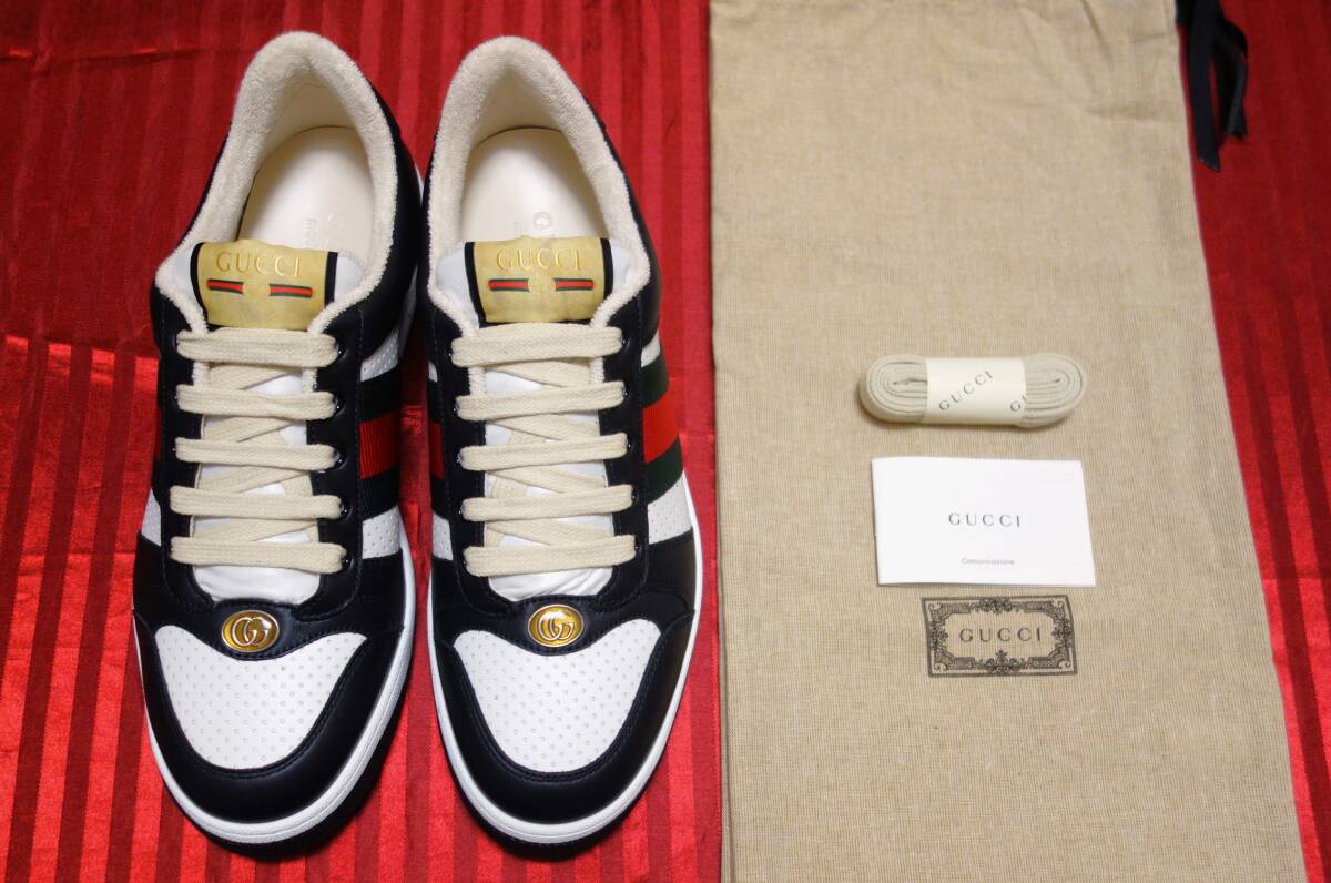 > 定価15万円 未使用品 グッチ(gucci) シェリーライン レザースニーカー 91/2 (日本サイズ28~28.5cm) 白×黒