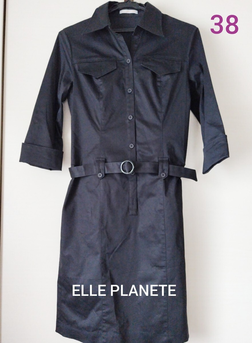 - ELLE PLANETE ネイビー タイト ワンピ 38 M膝丈 七分袖 エルプラネット 紺色 ワンピース 秋 夏