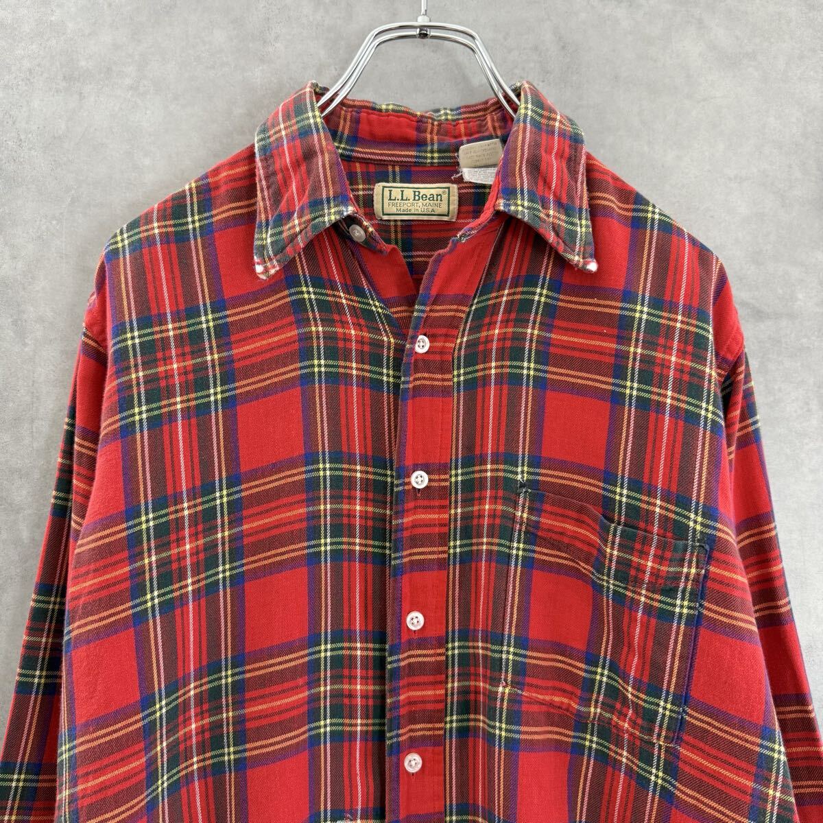 > 80s USA製 ヴィンテージ L.L Bean エルエルビーン タータンチェックシャツ M ペンキ 雰囲気
