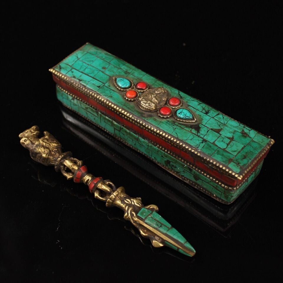 - 純銅八股金剛杵 チベット 純手造り馬頭金剛杵セット 空行母法器 降金剛闖金剛杵 密教器 純銅 赤松緑松 真鍮 金剛杵 宝杵 置物