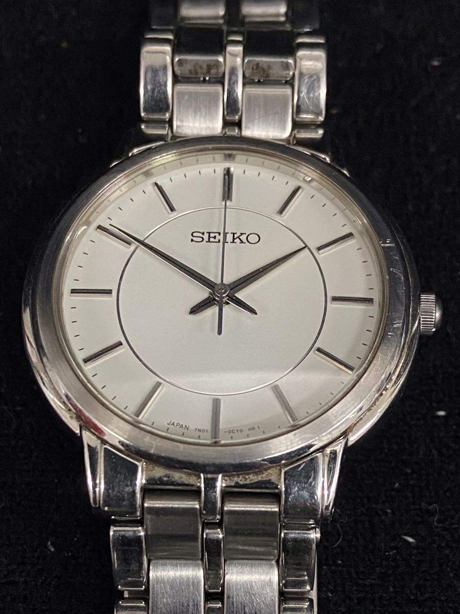 > C553★SEIKO セイコー 7N01-0BC0 クオーツ シルバー ホワイト文字盤 メンズ腕時計 新品電池交換済み 稼働品