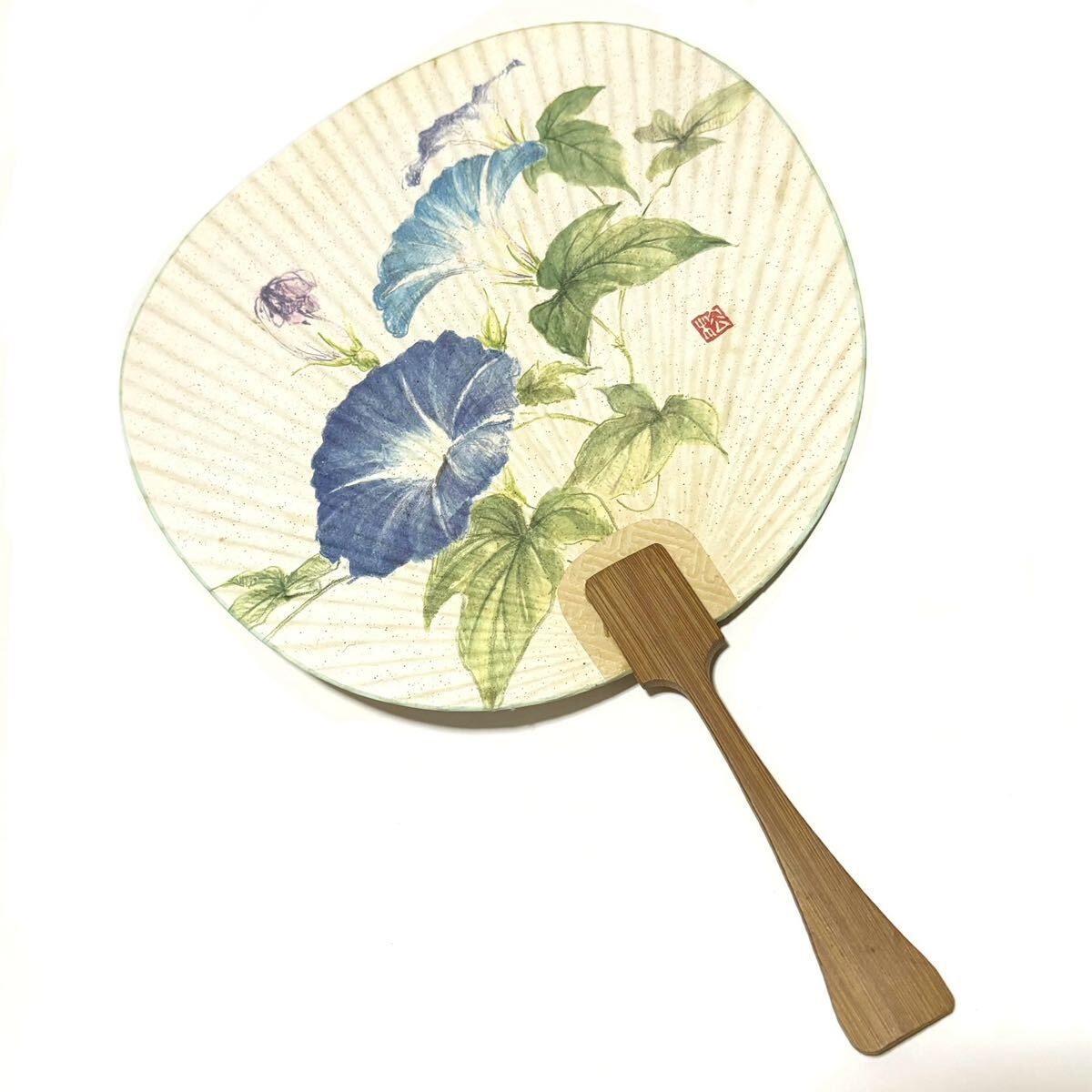 - 昭和レトロ アサガオ団扇 朝顔 青 木製 うちわ 水彩画 アンティーク調 ヴィンテージ ビンテージ 日本の夏 京うちわ 都うちわ 日本製 和