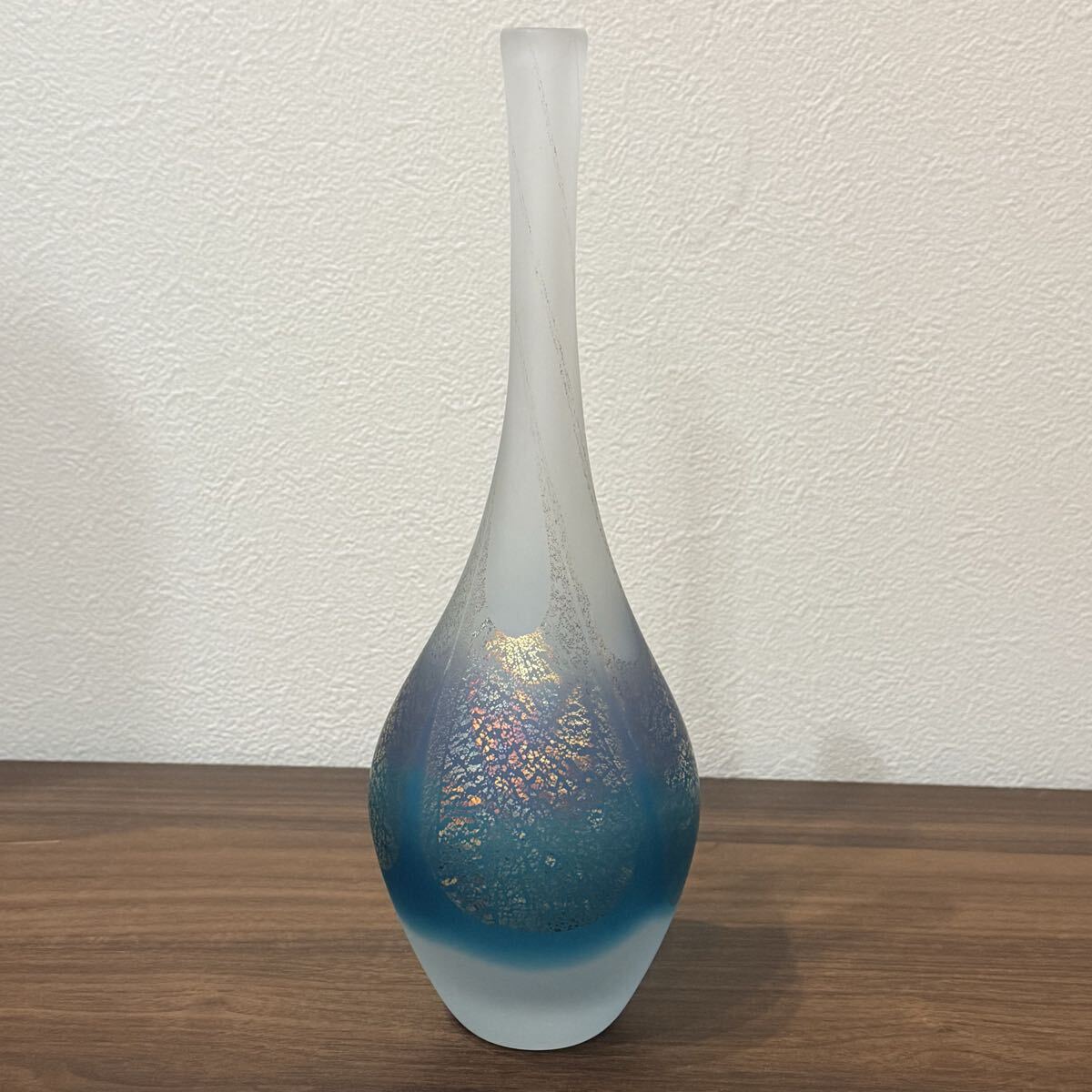 - *fufu* 津軽びいどろ 大川薫 玻璃 花瓶 29cm ガラス 花器 花入 フラワーベース 金彩 青 ao