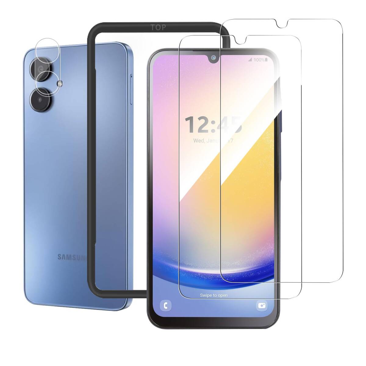 > A25 SC-53F/ A25 SCG33 ギャラクシー 対応 貼り付け簡単 保護フィルム ガラスフィルム(2枚)+カメラフィルム