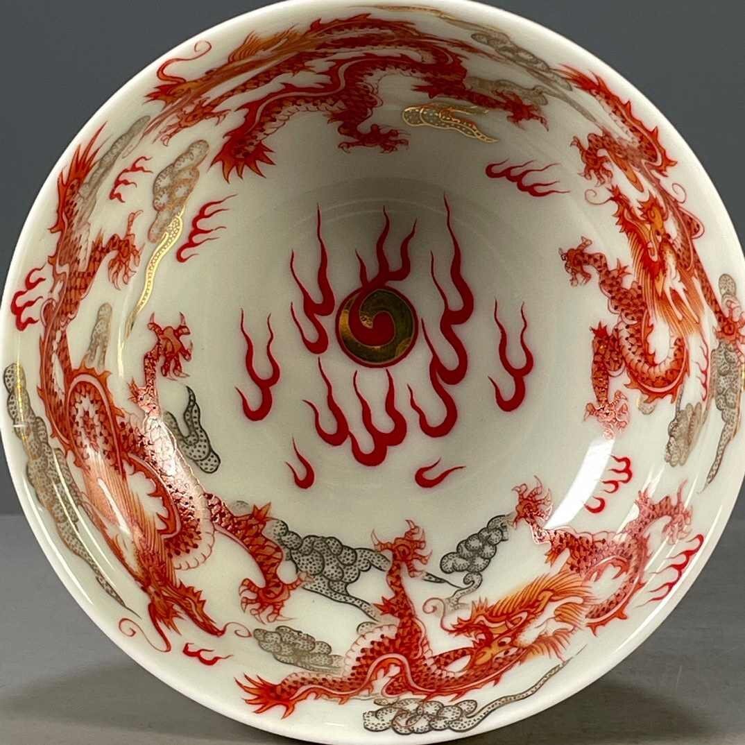 - 五彩龍紋碗 磁器 押手杯 主人杯 置物 磁器 中国陶磁 大清 乾隆 中国美術