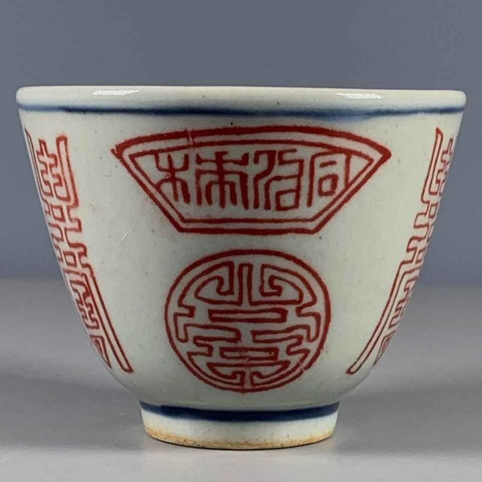 - 中華民国 老 貨釉里赤百寿紋 碗 磁器 押手杯 主人杯 置物 磁器 中国陶磁 中国美術