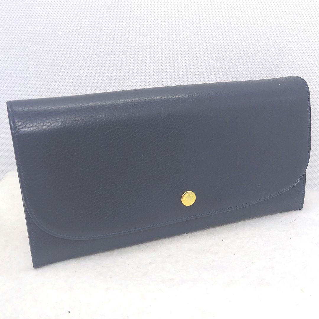 - ランバン 2つ折り財布 レザー ネイビー カード付き LANVIN