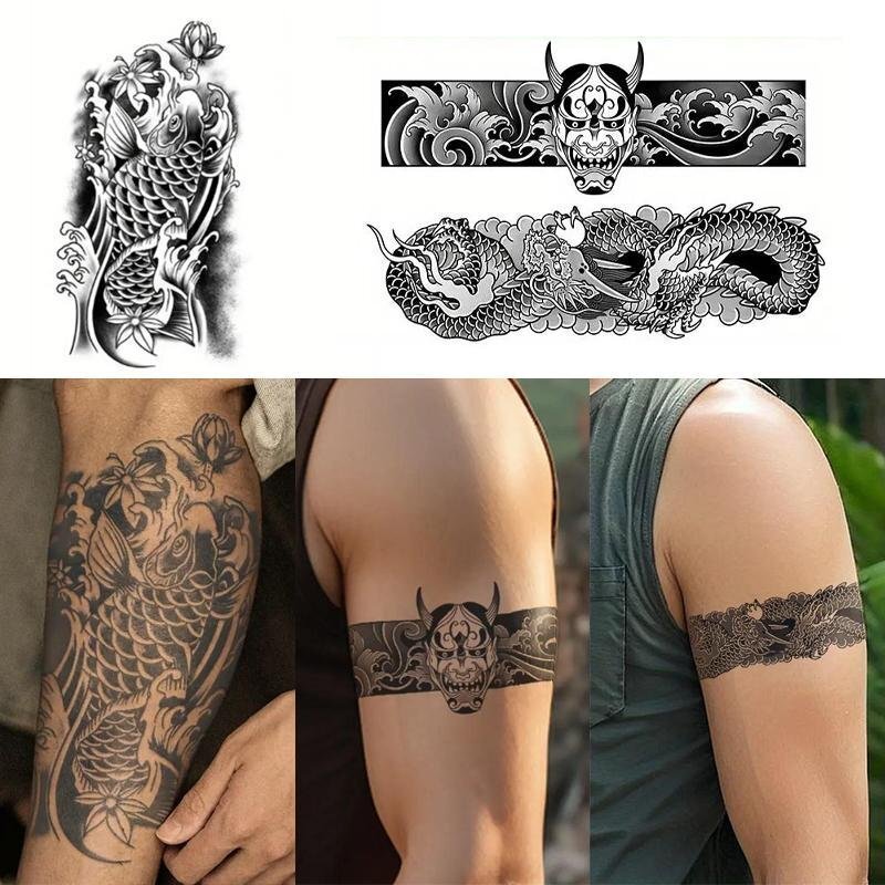- 【送料無料!タトゥーシール】★鯉 14cm×24cm/般若 5.5cm×14cm/龍 4.5cm×15cm 刺青 和柄 腕 脚 和彫 防水 耐久性 (SG-556+HC-742)