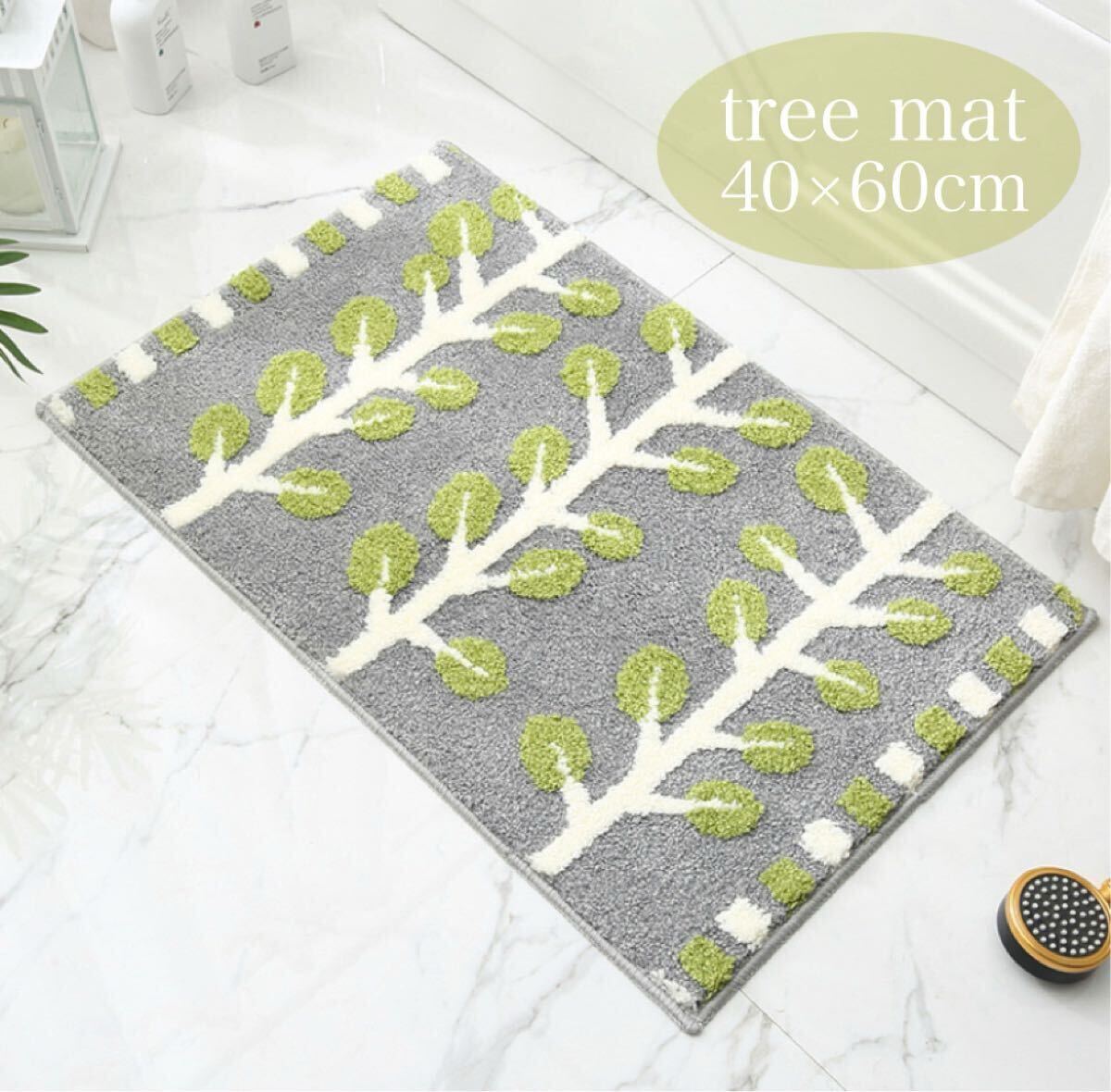 - バスマット グリーン 緑 玄関マット トイレマット ミモザ花 ツリー柄 葉っぱ キッチンマット インテリア 植物