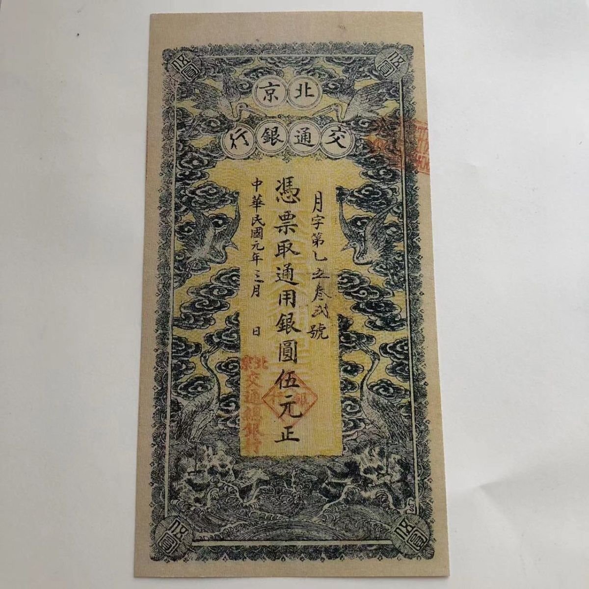 - 送料無料 中国紙幣 清朝 民国元年 北京交通銀行 五元 美品 外国紙幣 簡易包装 郵便発送 ZH703