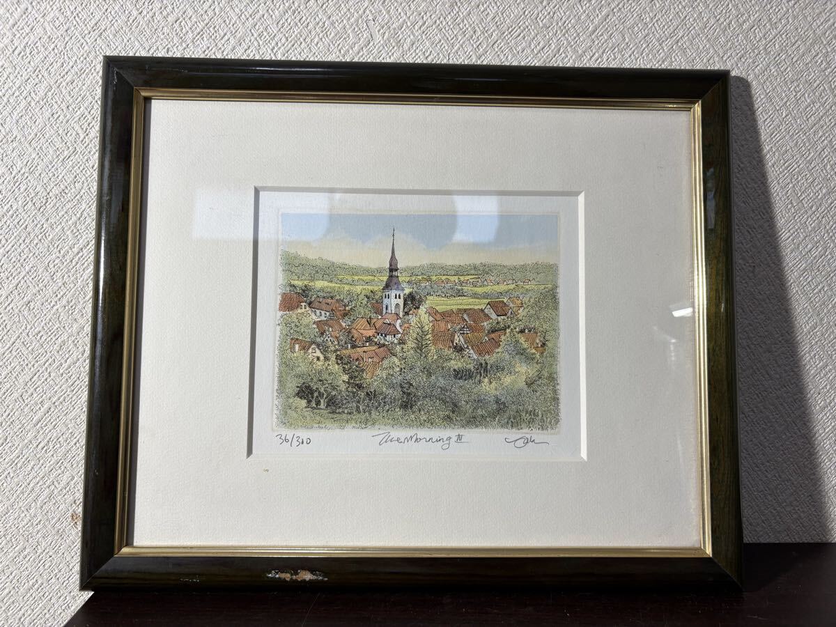 - 真作 織田義郎 朝の風景 絵画 風景画 美術品 銅版画 36/300