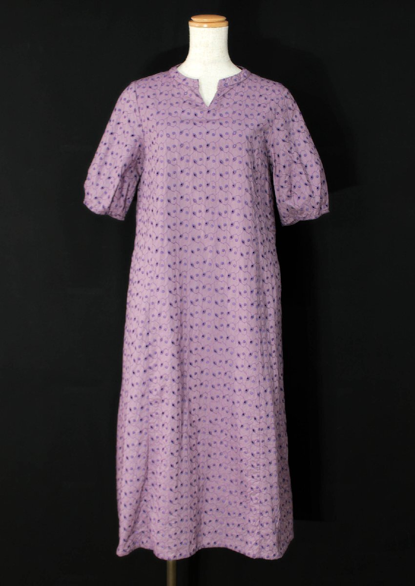 - ☆完売品/美品☆ホコモモラ/De la paredコットン総刺繍半袖ワンピース定価2.8万:40/紫系yx524