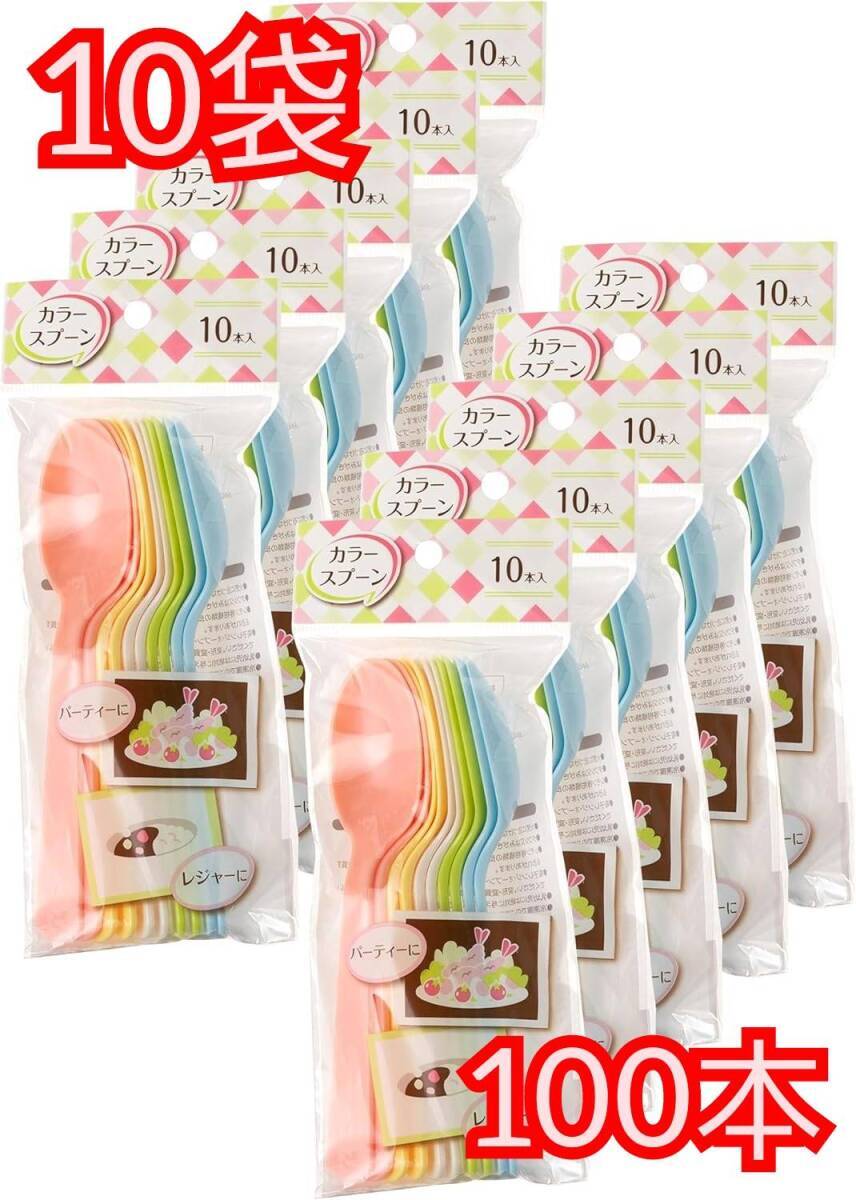 > 送料無料 ストリックスデザイン 使い捨てスプーン カラースプーン 10本×10個セット 100本 5色 パーティー アウトドア MA-023 新品 未使用