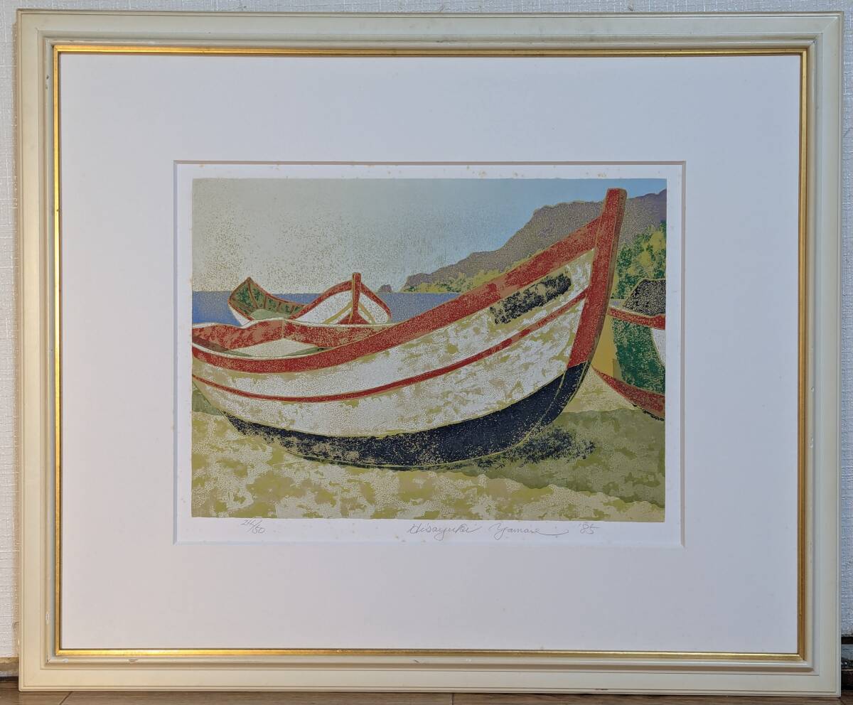 - 【真作】版画 山家久幸 シルクスクリーン ナザレ海岸 浜辺の風景版画 Z45