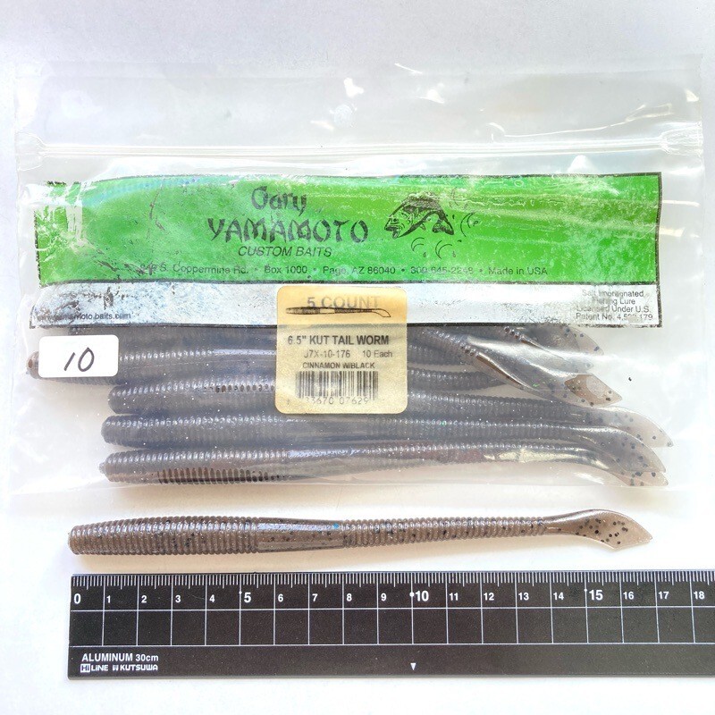 - 815143 新品 ゲーリーヤマモト 6.5インチ カットテールワーム 10本 GARY YAMAMOTO #176 シナモン/ブラックフレーク オールド品