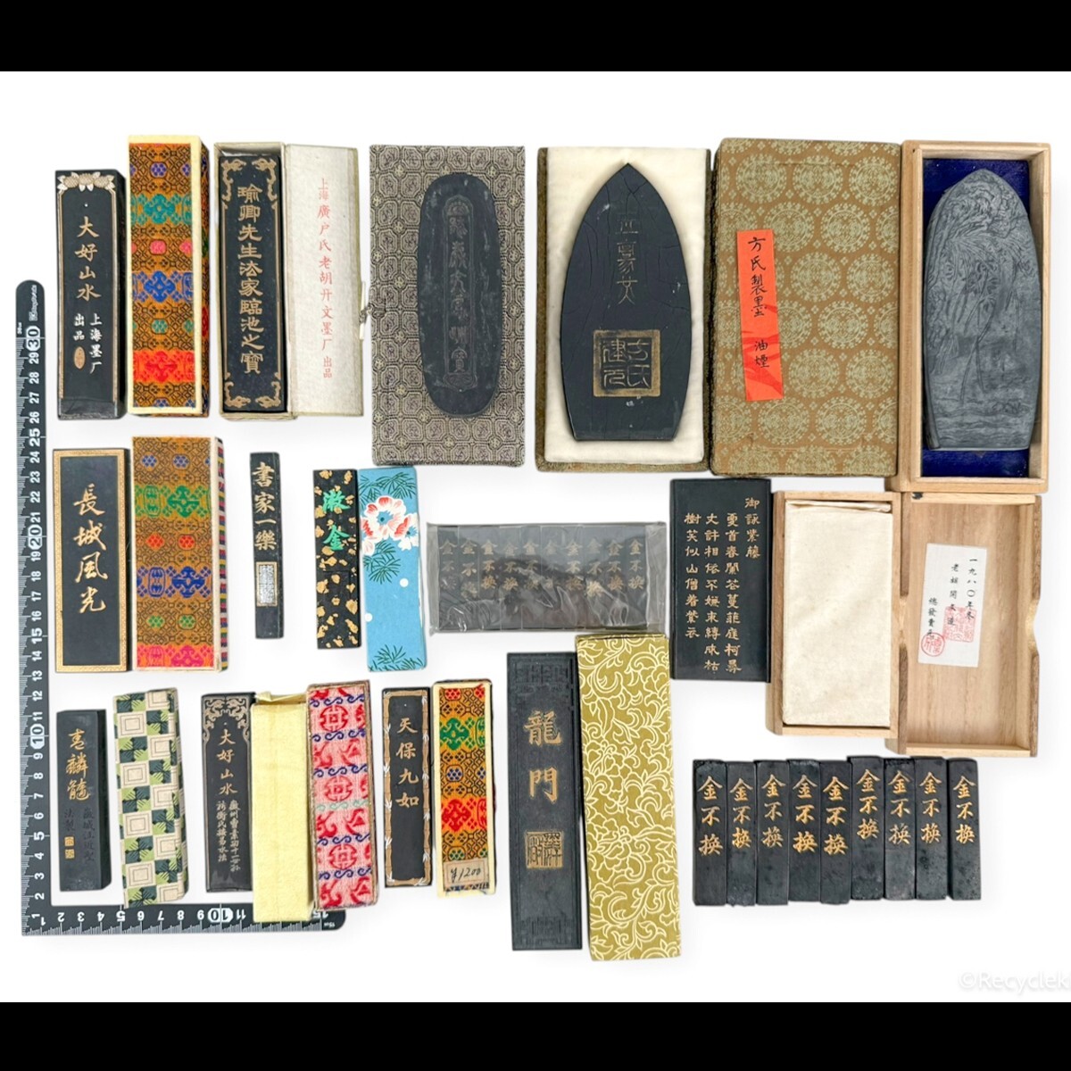 - 中国 古墨 上海墨厂/老胡開文/曹素功/超貢煙/五石 32点 御詠/方氏/大好 古墨 唐墨 文物 書道具 書画 中国書道 20250921-58