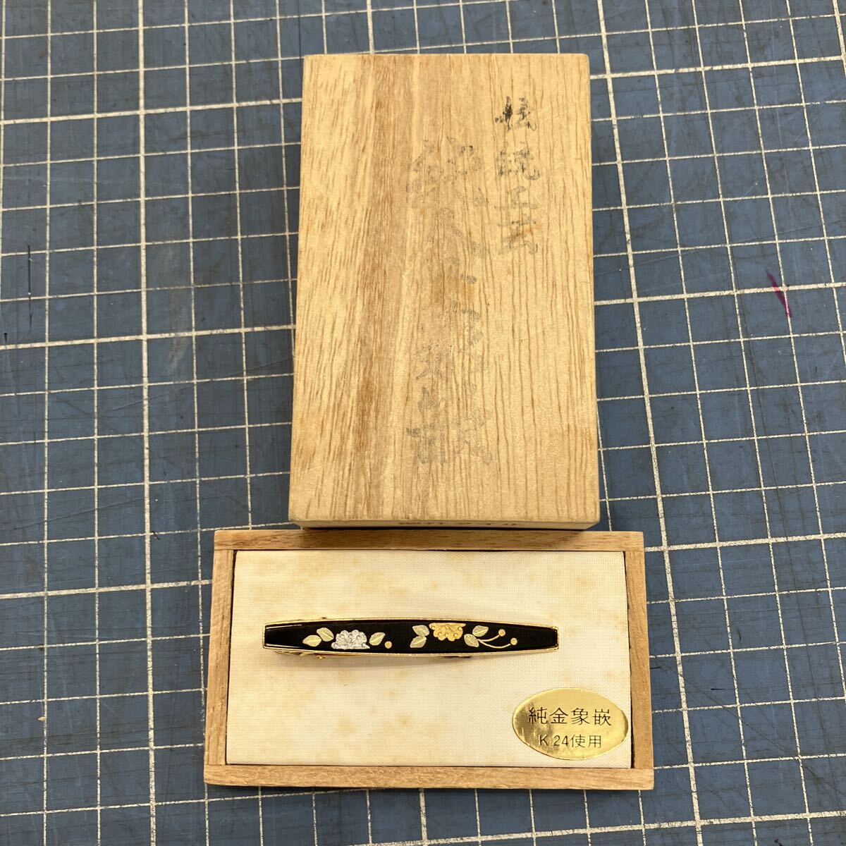 - 【純金象嵌 K24 型打タイ止】アクセサリー 和装小物 桜模様 木箱入り 伝統工芸品 金属製【A9-3②】0924