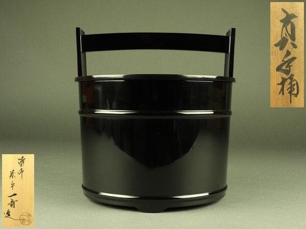 - 【宇】3208 塗師 茶平一斎造 真手桶水指 共箱 茶道具