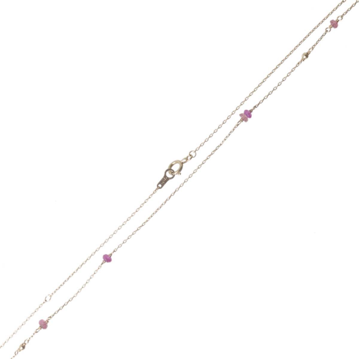 - agete アガット カラーストーン ステーションネックレス 小豆チェーン K10YG 10金×カラーストーン 首周り約45cm 重量約1.0g NT Bランク