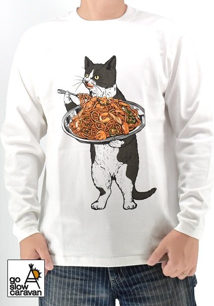 - 超ヘビーUSA/Cナポリタン猫 ロングスリーブTシャツ◆go slow caravan ホワイト Lサイズ 351909 ゴースローキャラバン ネコ ユニセックス