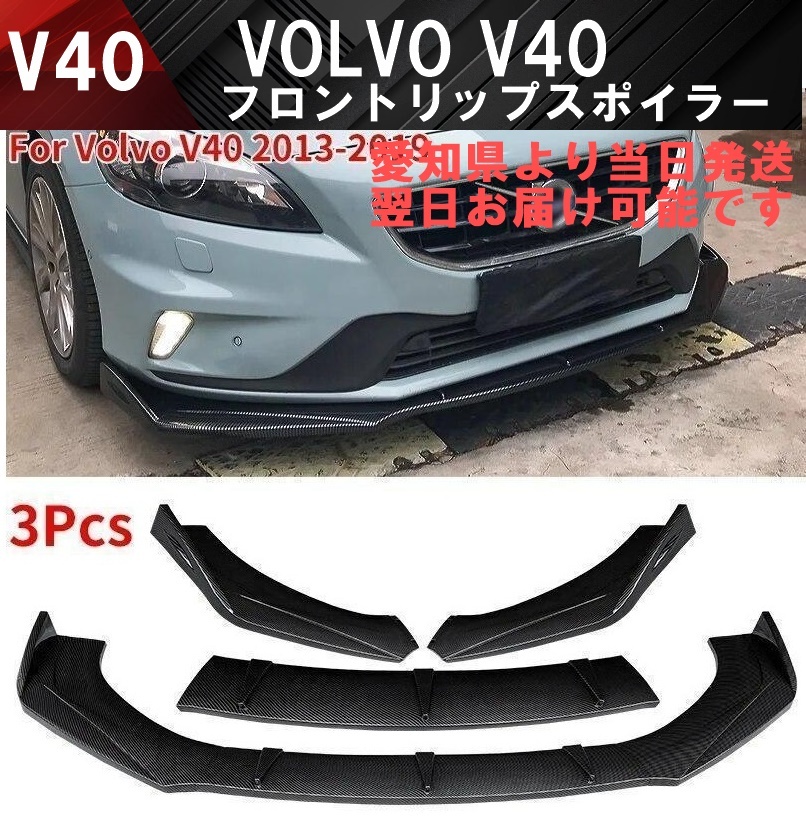 - 【送料無料】国内発送 在庫処分セール ボルボ V40 フロントリップスポイラー バンパー アンダー カナード スポイラー VOLVO カーボン調